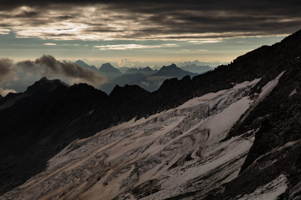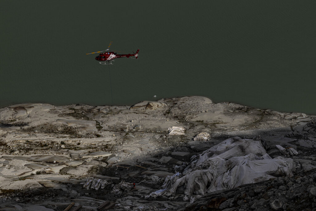 Let’s not kid ourselves, the glacier globally are disappearing at an alarming rate and they are NOT coming back. All the efforts we put into reducing carbon emissions only slow their inevitable demise. In my own short lifetime, I have seen the Rhone Glacier lose hundreds of meters of vertical ice. If you have kids of Gen-Alpha age, the glaciers will be gone in their lifetimes, as the rate of loss is accelerating. This is beyond tragic. The bottom image here is the saddest image I have ever taken; it exemplifies our ridiculous attitude towards glacial loss. In 1972 I visited the Rhone Glacier ice-grotto with my parents. The tunnel was at the level I am sitting taking the photo. Now the ‘grotto’ is under a white reflective ‘shroud’, covering the dead ice; the actual glacier is across the lake, 100m away. The helicopter transports away the material, hanging like dead cows removed from the scene of a tragedy. I am so pleased to be 60 and not 6.