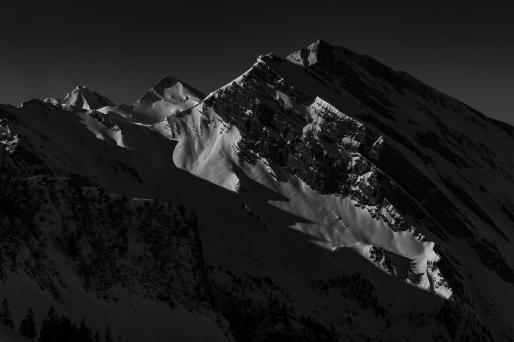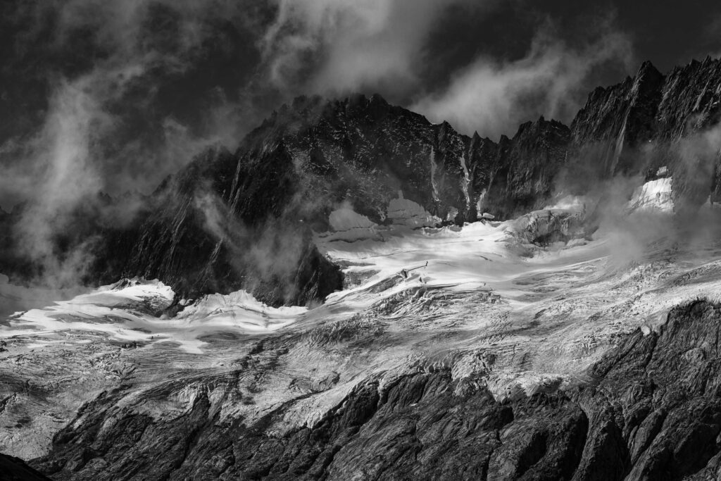 Black & white has transcended the history of photography from film through digital. It still has a unique chiaroscuro style that talks only of light, shade and textures. Mountains are great subject for B&W images, be it the contrasts of snow and rock, or stone and cloud, patterns of nature set against smooth inky black skies. The early works of Vittorio Sella are fine examples of an art that has changed little in 100 year, whilst the technique, has been revolutionary.